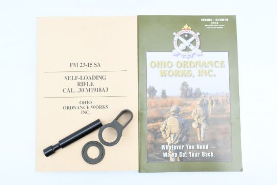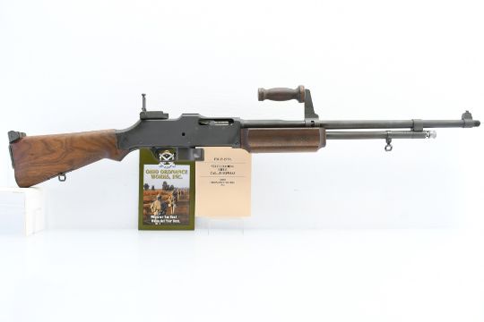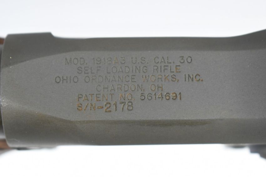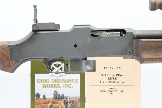 Illinois Residents May Not Participate In This Lot (Illinois Banned Item). OHIO ORDNANCE INFO: The Browning Automatic Rifle (BAR) Model 1918 was developed by John M. Browning in 1917. Approximately 350,000 were produced through the end of World War II. Ohio Ordnance Works, Inc. produces a semi-automatic reproduction (M1918A3 based on WWII version) of this venerable design so that you can own a piece of history. This is the only one of its kind in production anywhere in the world. It is manufactured with some of the original USGI WWI and WWII parts. For the last 21 years, Ohio Ordnance Works has taken great care in the building of each rifle. Only the highest quality new manufacture and USGI standard parts are used in its production. The receivers are machined from AISI 4140 steel billet on our state of the art CNC machining centers. Every rifle is fully assembled, inspected, test fired, and re-inspected under the direct supervision of a master armorer. SPECS: 24” CMV steel barrel with 1/10 twist rifling & .670-28 threaded muzzle, Phosphate finish, adjustable gas operated (closed bolt semi-automatic), walnut furniture, folding carry handle, adjustable folding leaf rear peep sight and reverse ramp type front blade sight. COMES WITH: Manual, front sight cover and bolt hold-open tool. This rifle does not include a magazine. Magazines, flash hiders, maintenance/ cleaning kits, custom hardcase, sling and many other accessories can be purchased from Ohio Ordnance Works online at https://www.oowinc.com/parts-accessories/1918a3/. CONDITION: This rifle is in good condition with some light surface wear, has a perfect sharp/ clean bore (possibly unfired) and appears to be in good working order. DISCLAIMER: This gun will need to be picked up by, or shipped to, a Federal Firearms Licensed dealer. FREE SHIPPING & NO PROCESSING FEES.