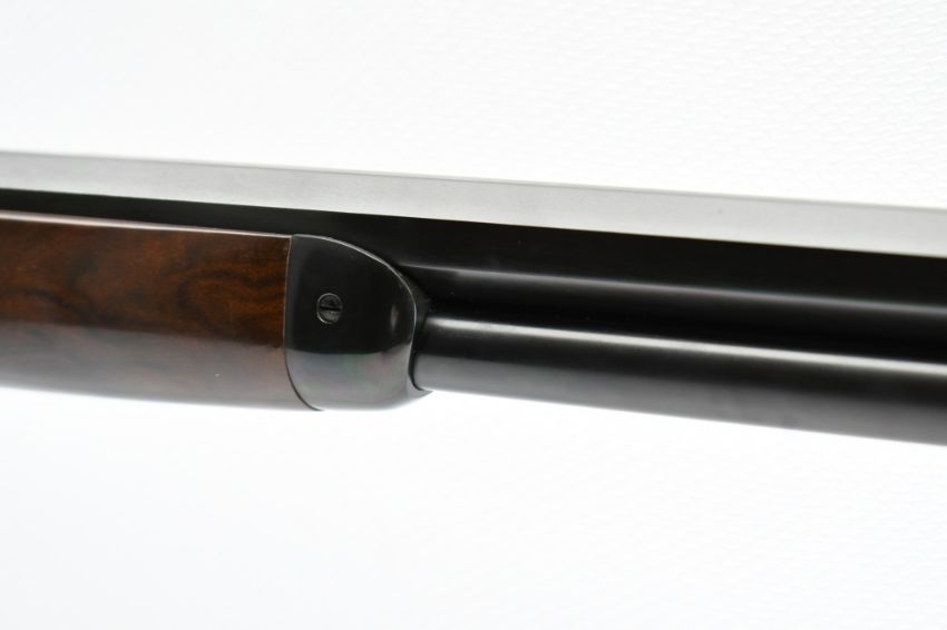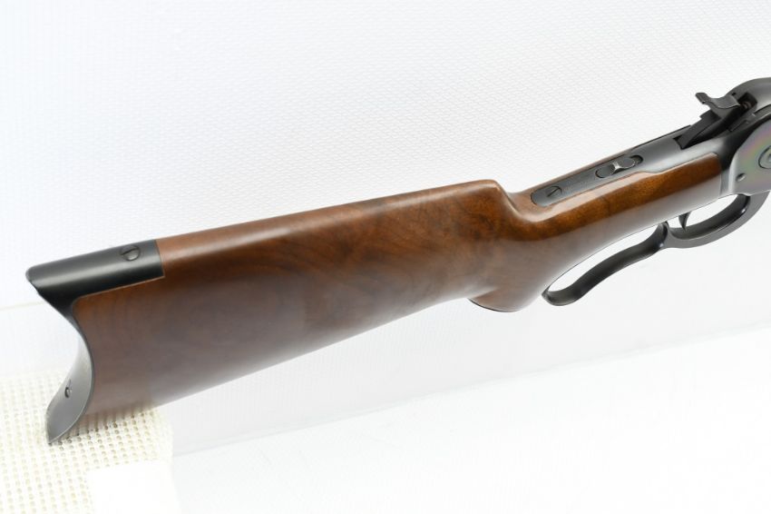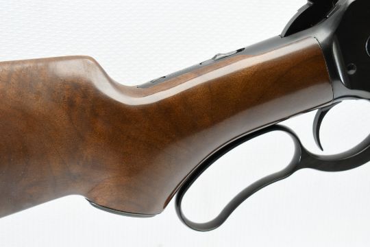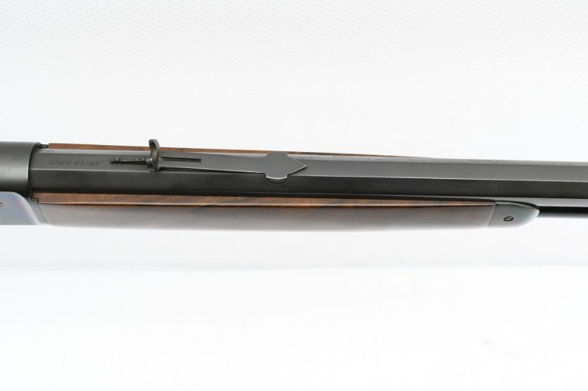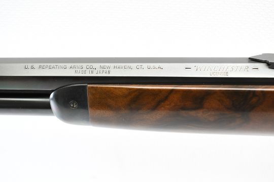 The serial number on this U.S. Repeating Arms Co. Winchester Model 1886 reflects a circa 2001 special limited configuration model (possibly a dealer special order or a Shot Show display rifle) ,and is #26 of an unknown production run (most likely under 250). SPECS: Select grade smooth black walnut stock with gloss finish, semi-pistol grip with black metal cap, high luster bluing, 26" full octagon barrel, buckhorn adjustable elevator rear sight , dovetailed gold bead front sight, curved metal buttplate with blued finish, full length magazine tube and tang safety. Does not include a box or paperwork. CONDITION: This rifle is in same-as-new condition with no wear to speak of, has a perfect sharp/ clean bore and appears to be in good working order. HISTORY: The Winchester Model 1886 was designed by John Browning to handle some of the more powerful cartridges of the period. Originally chambered in .45-70 Government, it was later offered in a half dozen other large cartridges. Despite being originally designed for use with black powder, the action was strong enough to make the jump to smokeless powder with only minor modifications, and was subsequently chambered in the smokeless .33 Winchester cartridge beginning in 1903. It was discontinued in 1935, when Winchester introduced a slightly modified M1886 as the Model 71, chambered for the more powerful .348 Winchester cartridge. FREE SHIPPING & NO PROCESSING FEES.