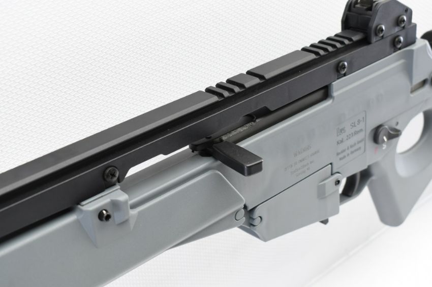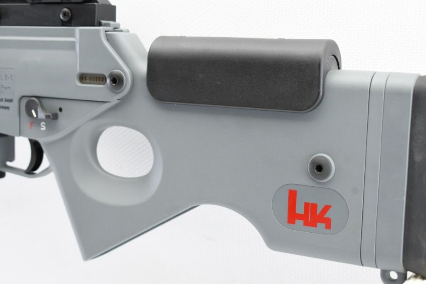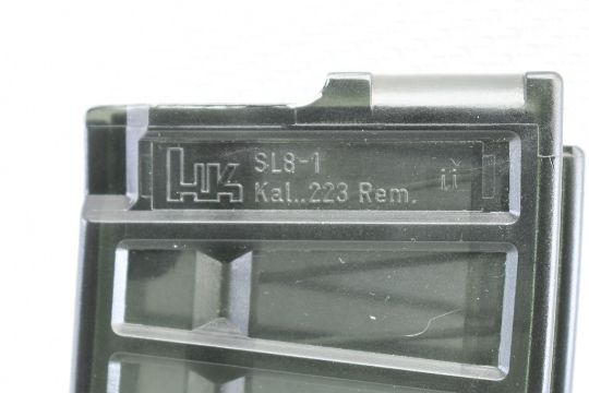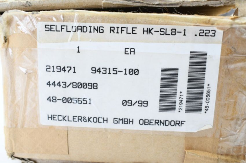 Illinois Residents May Not Participate In This Lot (Illinois Banned Item). SPECS: Short-stroke piston system with a round rotating multi-lugged bolt (AR-15 Style), ambidextrous rotating cocking handling, long carrying handle with a Picatinny rail type system, shrouded rail mounted front post sight, fully adjustable dual folding aperture rear sight, grey carbon fiber polymer thumbhole stock, adjustable cheekpiece, 20.8" cold hammer forged barrel with recessed target crown, integral sling studs and ambidextrous safety. COMES WITH: Original box, soft case, manual, (3) HK 10-round magazines, (1) ProMag 20-round magazine, HK multi-tool and HK lock. CONDITION: This one-owner gun is new-in-box unfired with no box wear, has a perfect bore and appears to be in good working order. HISTORY: The Heckler & Koch SL8 (Selbstladegewehr 1998) is a semi-automatic version of the German Military G8 assault rifle. The SL8-1 is the grey US-import version of the rifle with a sighting system that consists of a long rail. These rifles were designed as the next generation H&K 93 for precision shooting. The free-floating bull barrel is manufactured with the famous HK cannon grade steel, and the bolt/ bolt carrier are fully enclosed in the outer chassis. DICLAIMER: This gun will need to be picked up by, or shipped to, a Federal Firearms Licensed dealer. FREE SHIPPING & NO PROCESSING FEES.