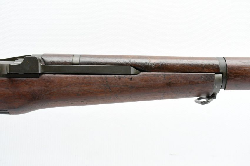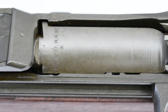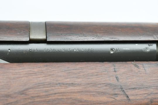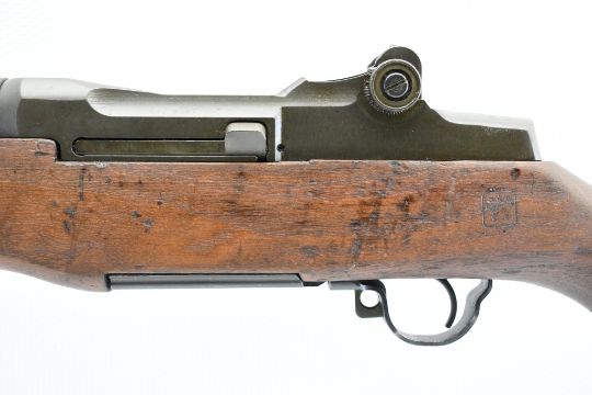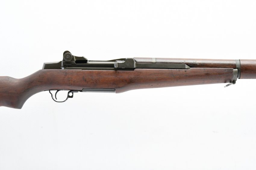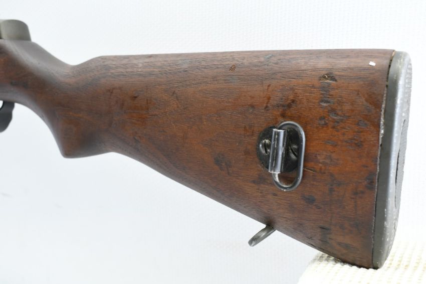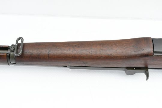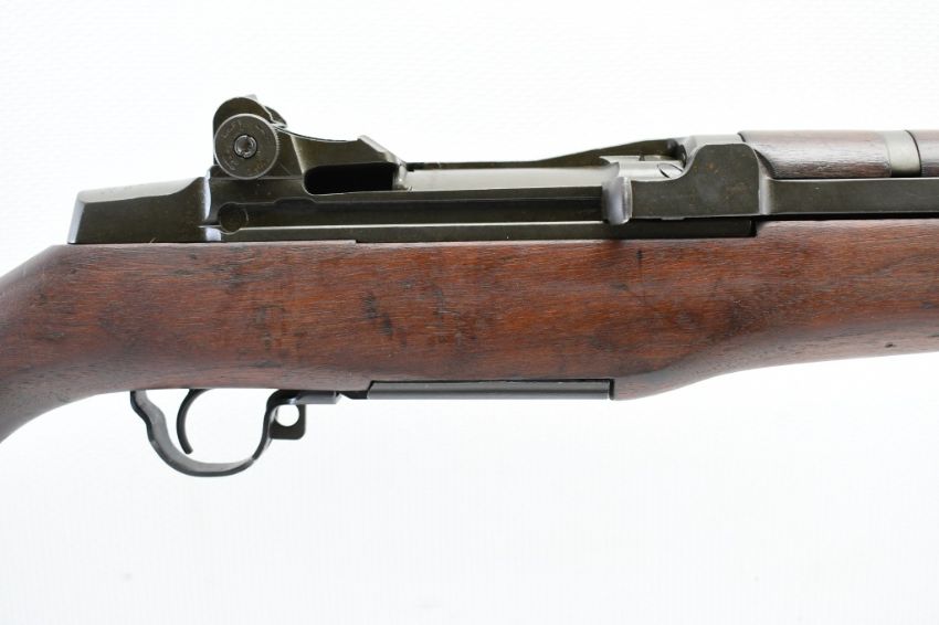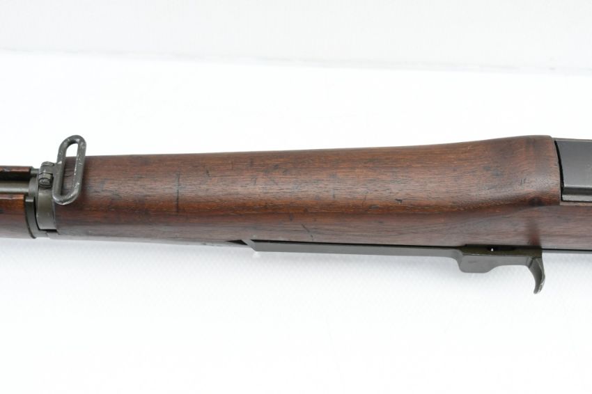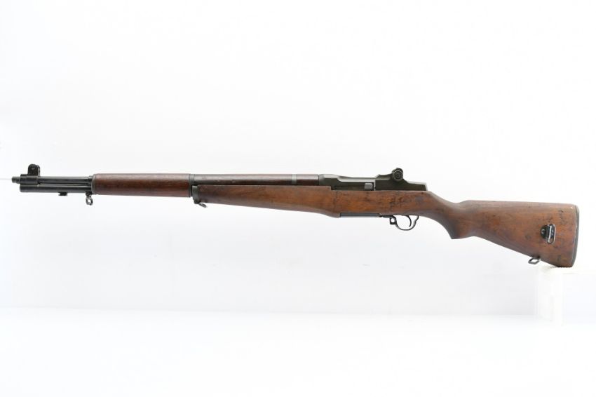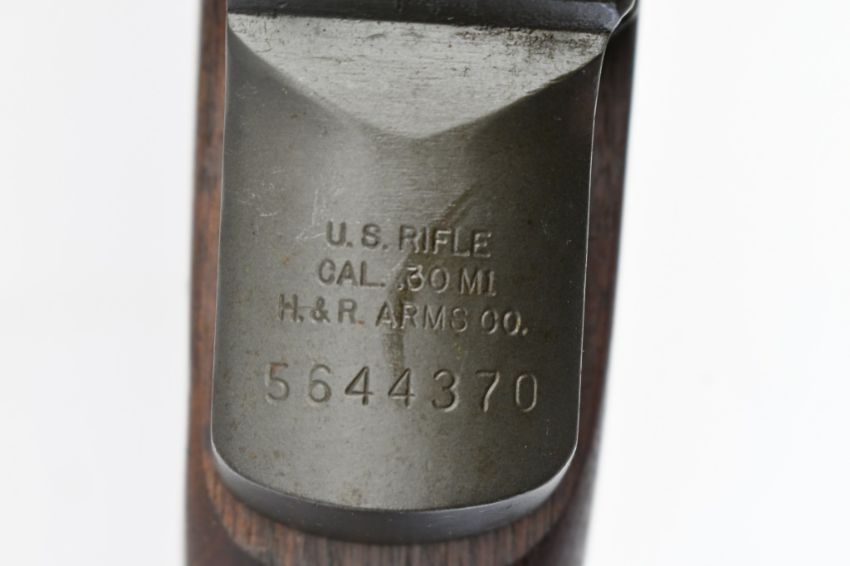 According to the U.S. M1 Garand Serial Numbers production chart, this U.S. Harrington & Richardson Arms Co. (H&R) M1 Garand Rifle represents a production date of 1955, and sports the original HRA barrel dated "4-5". STOCK MARKINGS: Left side cartouche and "P" proof under the grip. SPECS: 24" barrel, walnut stock & handguard, adjustable aperture rear battle sight, wing protected front post sight, bayonet lug, sling rings, checkered metal buttplate with cleaning kit compartment (does not include kit) and 8-round internal magazine. CONDITION: This gun is in good condition with light battle wear, has an excellent sharp/ clean bore and appears to be in good working order. HISTORY: The M1 Garand is a .30-06 caliber semi-automatic rifle that was the standard U.S. service rifle during World War II and the Korean War. The M1 rifle was named after its Canadian-American designer, John Garand. The M1 Garand replaced the bolt-action M1903 Springfield as the standard U.S. service rifle in 1936, and General George S. Patton called it "the greatest battle implement ever devised". It is a gas-operated, 8 shot clip-fed, semi-automatic rifle that is 43.6" long, weighs about 9.5 pounds and has a 24" barrel. FREE SHIPPING & NO PROCESSING FEES.