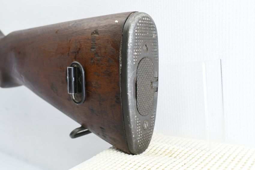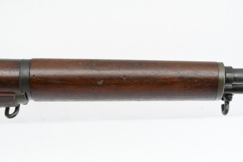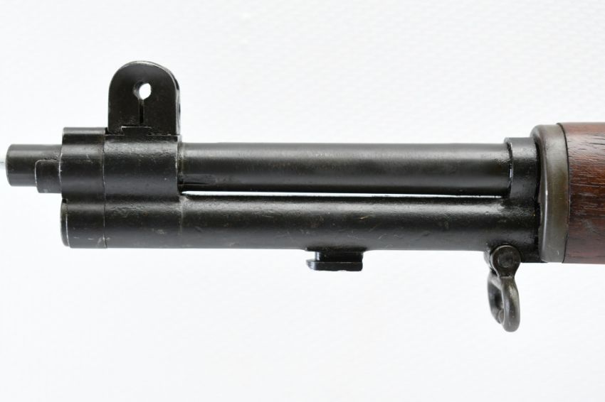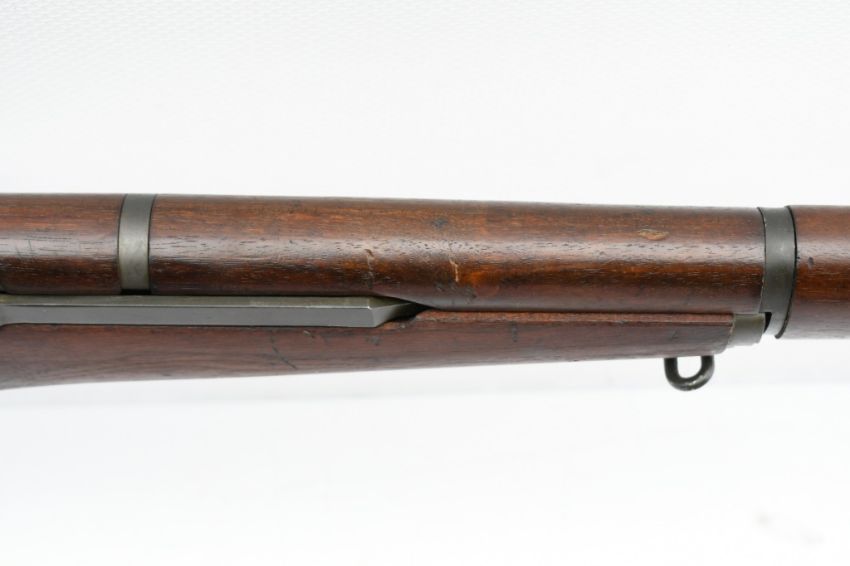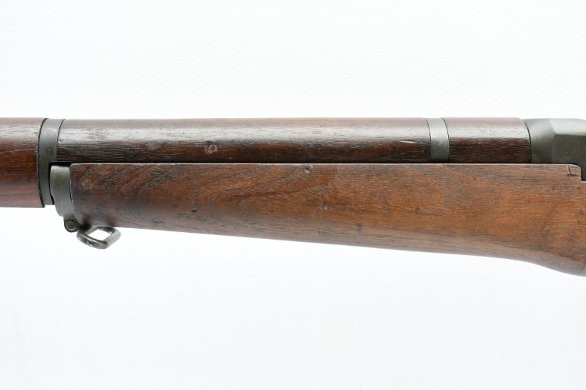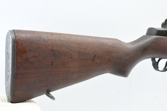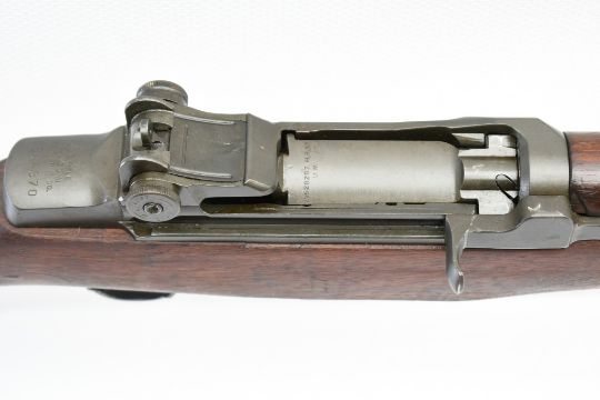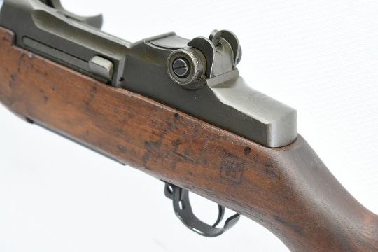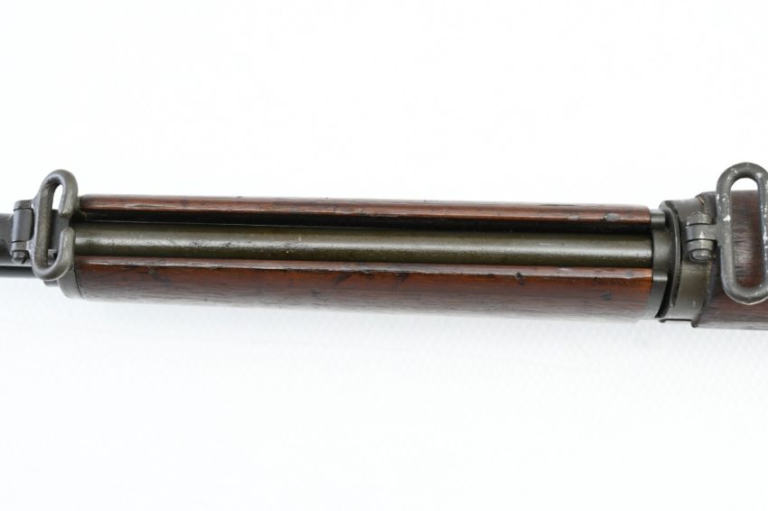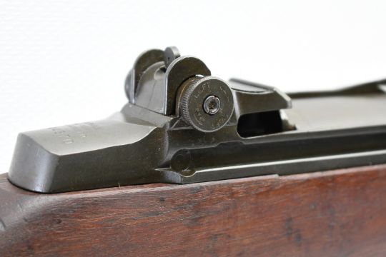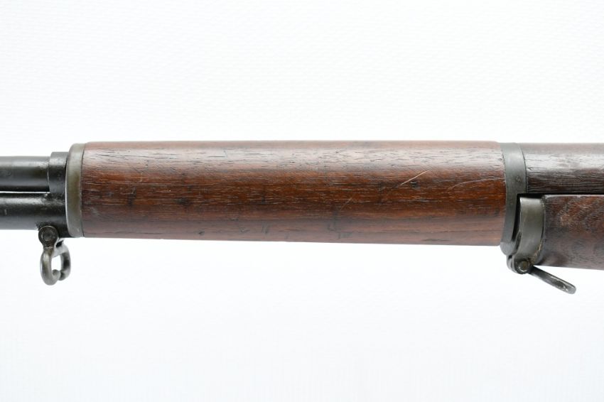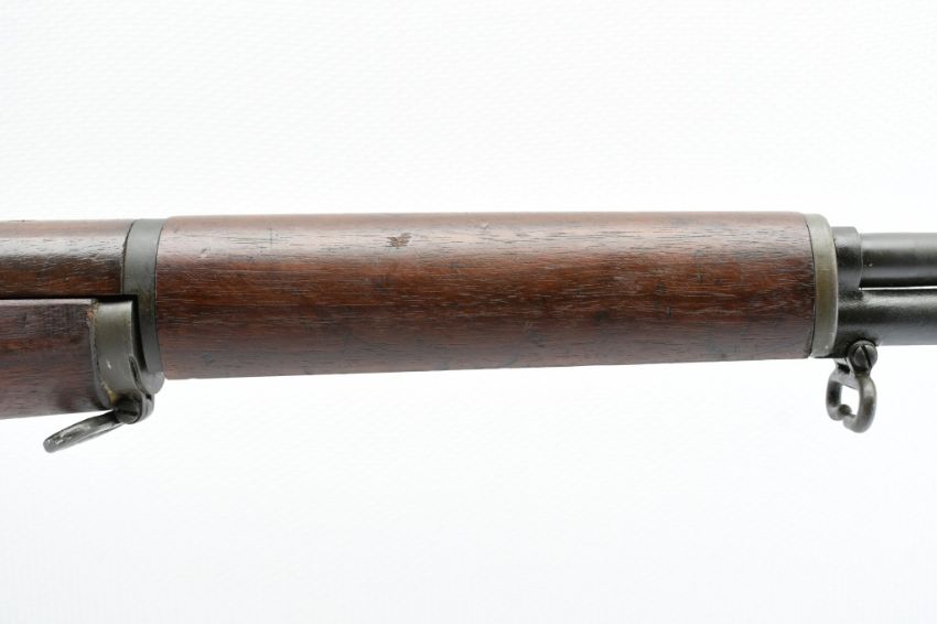 According to the U.S. M1 Garand Serial Numbers production chart, this U.S. Harrington & Richardson Arms Co. (H&R) M1 Garand Rifle represents a production date of 1955, and sports the original HRA barrel dated "4-5". STOCK MARKINGS: Left side cartouche and "P" proof under the grip. SPECS: 24" barrel, walnut stock & handguard, adjustable aperture rear battle sight, wing protected front post sight, bayonet lug, sling rings, checkered metal buttplate with cleaning kit compartment (does not include kit) and 8-round internal magazine. CONDITION: This gun is in good condition with light battle wear, has an excellent sharp/ clean bore and appears to be in good working order. HISTORY: The M1 Garand is a .30-06 caliber semi-automatic rifle that was the standard U.S. service rifle during World War II and the Korean War. The M1 rifle was named after its Canadian-American designer, John Garand. The M1 Garand replaced the bolt-action M1903 Springfield as the standard U.S. service rifle in 1936, and General George S. Patton called it "the greatest battle implement ever devised". It is a gas-operated, 8 shot clip-fed, semi-automatic rifle that is 43.6" long, weighs about 9.5 pounds and has a 24" barrel. FREE SHIPPING & NO PROCESSING FEES.
