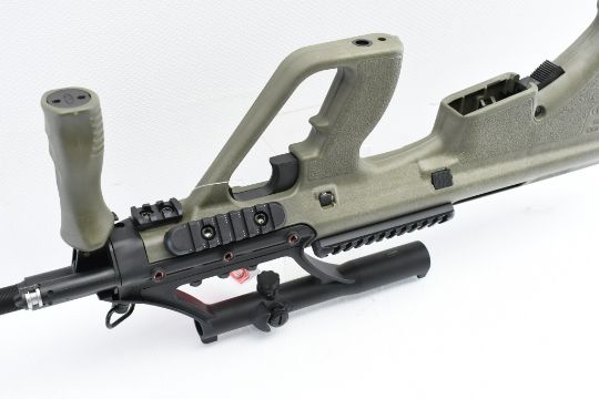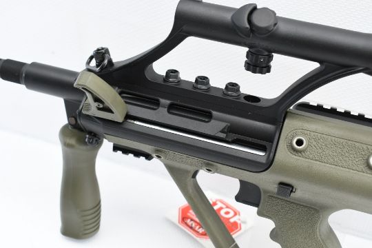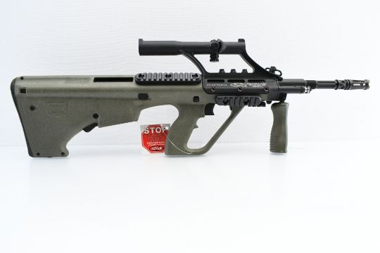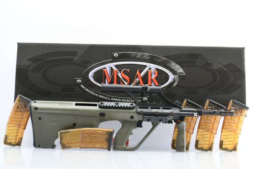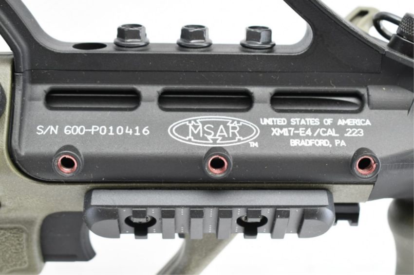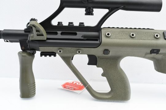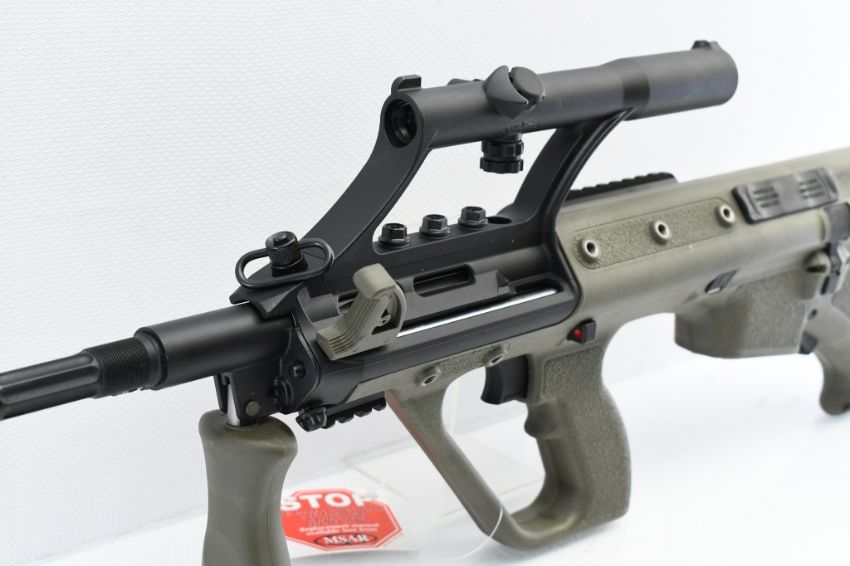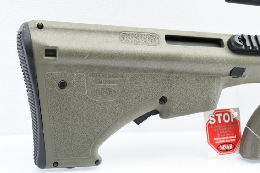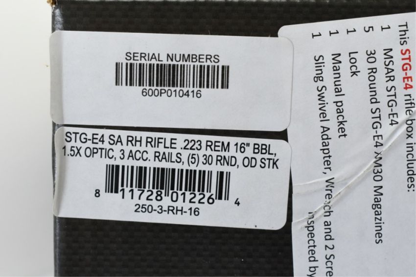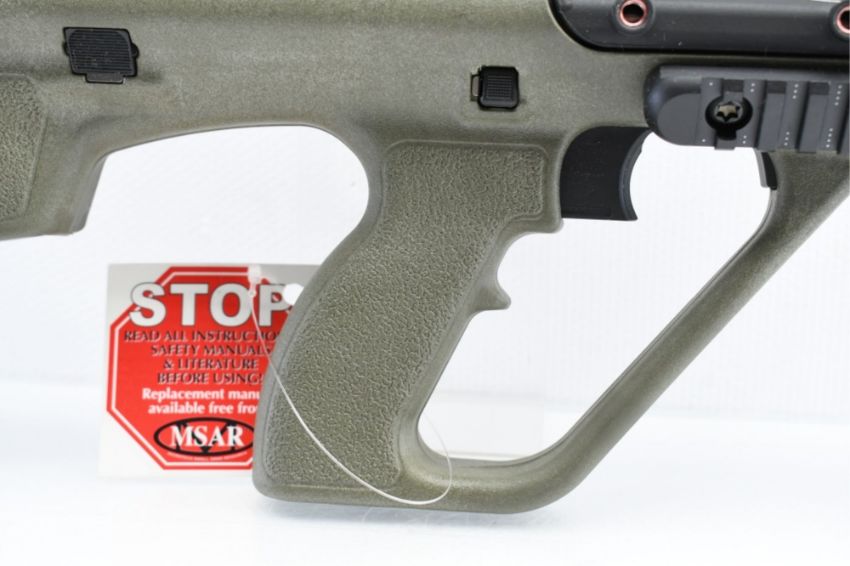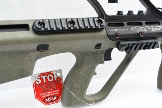 Illinois Residents May Not Participate In This Lot (Illinois Banned Item). SPECS: OD green polymer outer chassis, 16" fluted quick detach barrel, 2" flash hider, adjustable gas system, folding forward vertical grip and integral AUG style scope/ carry handle. CONDITION: This gun is from a former Firearms Wholesale Distributor and is new/ unfired in original box with (5) magazines & paperwork, has a perfect bore and appears to be in good working order. HISTORY: Introduced at the 2007 SHOT Show, the STG-556 (later renamed model XM17-E4) is an American-made version of famous Steyr AUG-SA rifle, formerly manufactured by Microtech Small Arms Research (MSAR). The frame was made on 7075 T6 aircraft-grade aluminum and made from cast, unlike the TPD AXR as it was made through forging. It was available in black, tan and green finishes. It features a bolt release as seen on the M16 rifle and a forward assist. Otherwise, the STG-556 retains the features similar to the Steyr AUG, such as having the quick-change barrel option and the ability to change which side the weapon ejects from by changing the bolt out for a right or left side bolt respectively. The STG-556 has a right-side ejector. MSAR closed down permanently on March 20, 2015. DISCLAIMER: This gun will need to be picked up by, or shipped to, a Federal Firearms Licensed dealer. FREE SHIPPING & NO PROCESSING FEES.