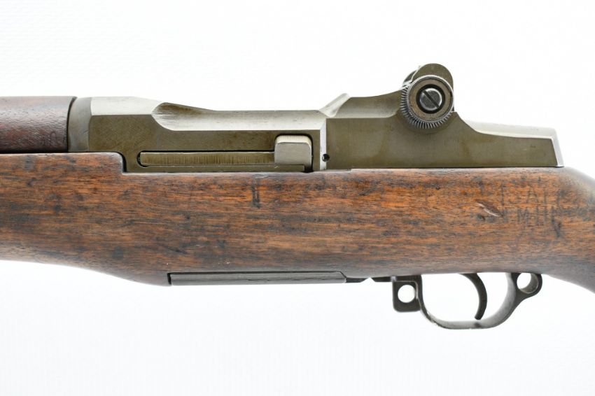 According to the U.S. M1 Garand Serial Numbers production chart, this U.S. Springfield M1 Garand Rifle represents a production date of November, 1944, and sports an SA barrel dated "3-49". STOCK MARKINGS: Left side cartouche and "P" proofed under the grip. SPECS: 24" barrel, walnut stock & handguard, adjustable aperture rear battle sight, wing protected front post sight, bayonet lug, sling rings, checkered metal buttplate with cleaning kit compartment (does not include kit) and 8-round internal magazine. CONDITION: This gun is in nice condition with light battle wear, has an excellent sharp/ clean bore and appears to be in good working order. This rifle comes in a green Civilian Marksmanship Program (CMP) hardcase, en-bloc clip and manual (does not include certificate). Each M1 Garand rifle sold by CMP is an authentic U.S. Government rifle that has been inspected, headspaced, repaired, if necessary, and test fired for function. HISTORY: The M1 Garand is a .30-06 caliber semi-automatic rifle that was the standard U.S. service rifle during World War II and the Korean War. The M1 rifle was named after its Canadian-American designer, John Garand. The M1 Garand replaced the bolt-action M1903 Springfield as the standard U.S. service rifle in 1936, and General George S. Patton called it "the greatest battle implement ever devised". It is a gas-operated, 8 shot clip-fed, semi-automatic rifle that is 43.6" long, weighs about 9.5 pounds and has a 24" barrel. FREE SHIPPING & NO PROCESSING FEES.